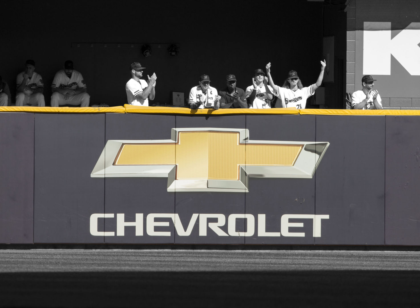 Static signage on the Field Tarp located down the third baseline allowing for high visibility to fans at Miller Park and viewing at home