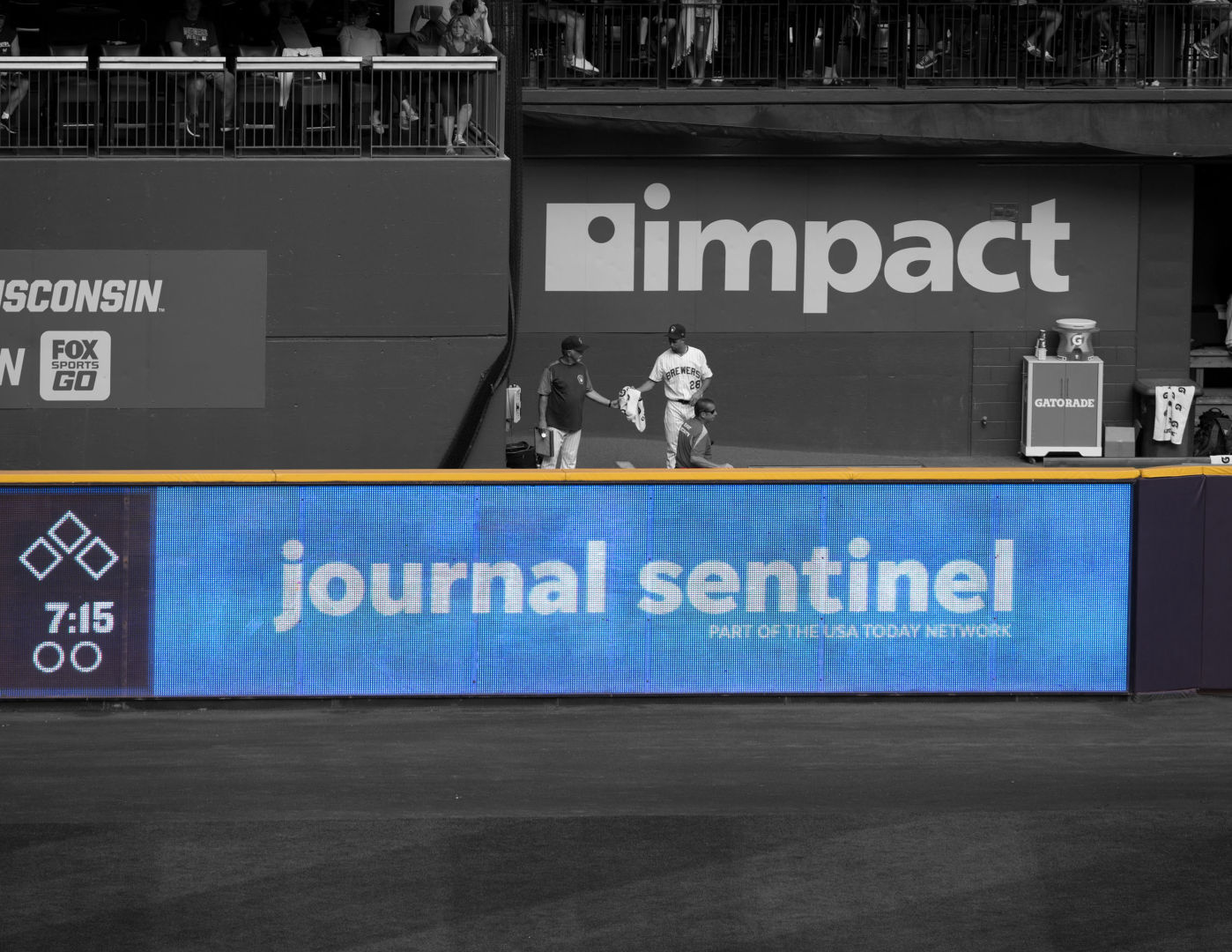 Encircles the field extending from foul pole to foul pole (over 1,000 feet), the LED Ribbon Board adds to the excitement at Miller Park